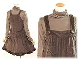 ポンポン付き裾フリルコーデュロイ生地サロペットワンピース【ブラウン】 価格: 4,800円 レビュー評価: レビュー数: コーデュロイ生地ウエストポンポン付きサロペットワンピ♪